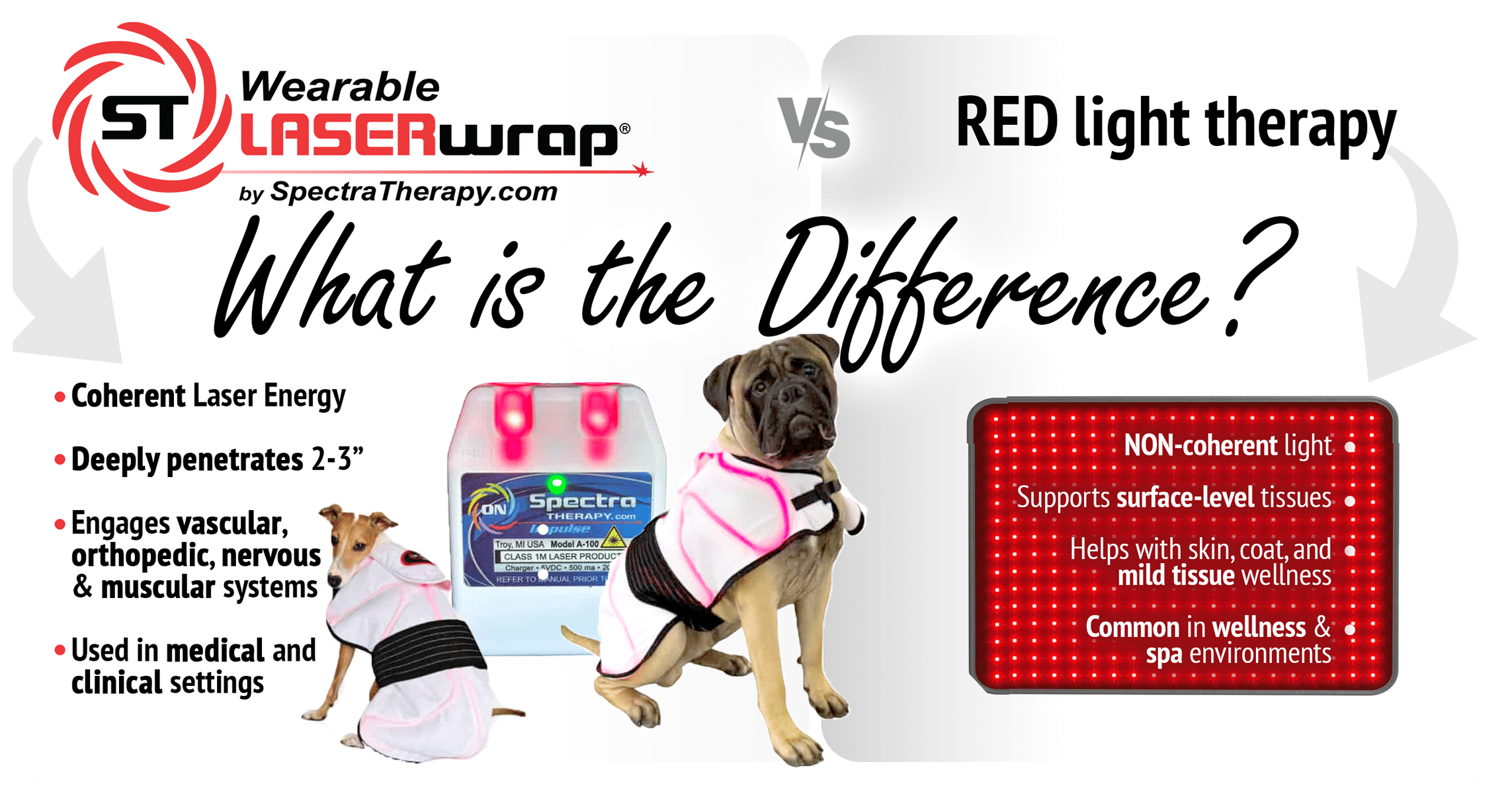 This guide breaks down the two technologies in simple, clear terms so you can understand why LASERwrap® delivers deeper, more targeted therapeutic benefits for pets and people.